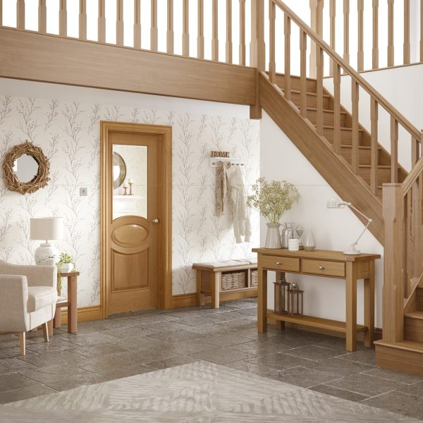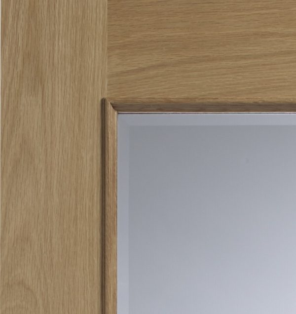 The Calabria Internal Glazed Oak Door is a timeless style with genuine oak raised mouldings with a curved central panel design. Using Clear Bevelled glass is an excellent way to add a touch if elegance to the home and using genuine oak features like the lipping and raised mouldings provides even stronger colour consistency.