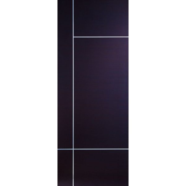 A contemporary fully finished Wenge door with real aluminium inlays.