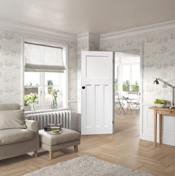 A 1930s inspired door the DX uses flat recessed panels and obscure glass to create this popular style. A door very much at home in a property from that period this door is part of our White Primed Collection. A fellow panelled door is available to complete the range.