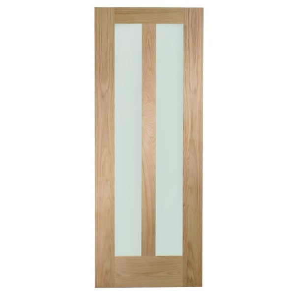 The Novara contemporary internal oak door has a twin light design with clear glass. The two large glass apertures allow light to transfer seamlessly through any home. The Novara is also available in a solid panelled version as well as a fire door, allowing a consistent look to be created throughout the home.