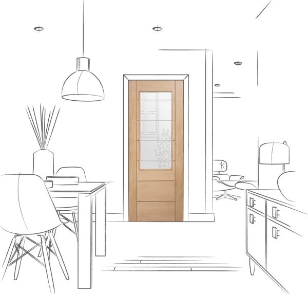 This glazed oak door comes with a large pane of clear etched glass at the top of the door, the etching matches the grooves on the door giving a door that really will add a touch of class to any setting. The range of doors also comes with panelled, fire and bi-fold door options.