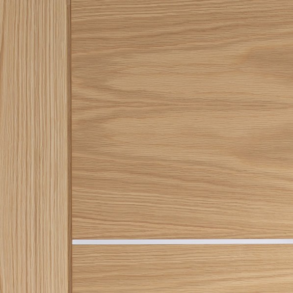 A contemporary fully finished Oak door with horizontal panels and real aluminium inlays.