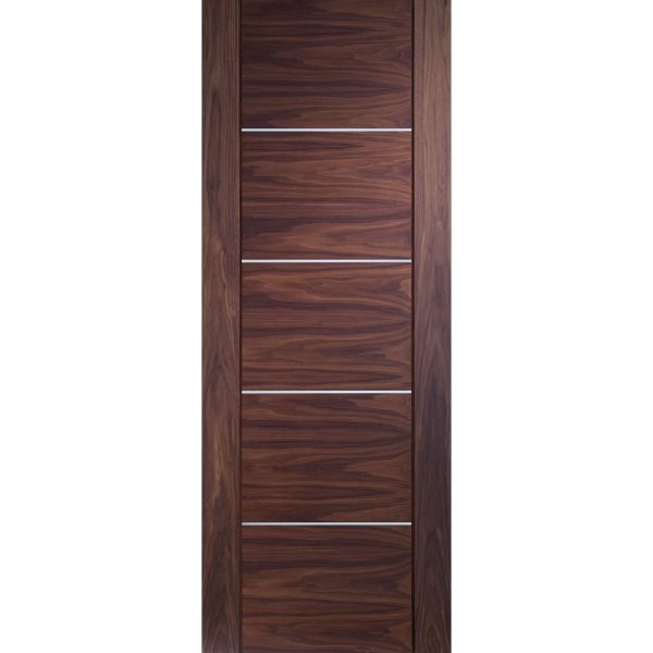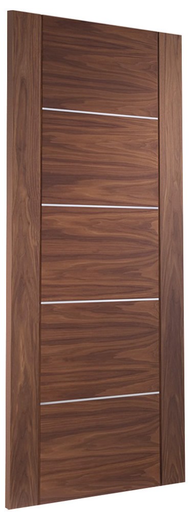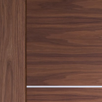 The fully finished Walnut Portici fire door blends contemporary horizontal grain with real aluminium inlays to create an impressive looking door that would bring a touch of class to any home. Pre-Finished in a clear AC lacquer and ready to hang. Complementary panelled and glazed doors are also available in the range along with an Oak alternative.
