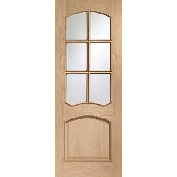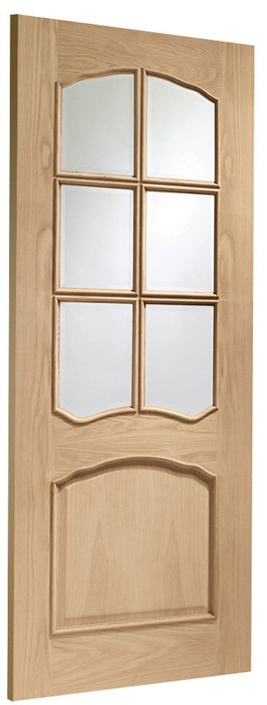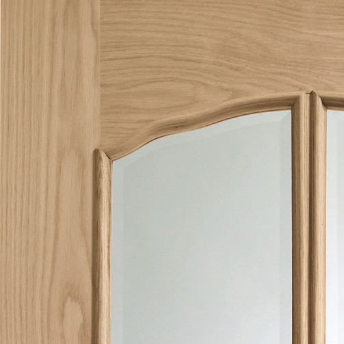 A fully finished traditional style doors forms part of our Pre-Finished Oak Collection. The Riviera door fuses traditional style with the natural look of oak to create a design that will look at home in any traditional property. The detail of the raised mouldings perfectly complements the clear bevelled glass to give a sense of real opulence. The matching Louis oak range complements this door perfectly allowing truly stunning looks to be achieved within the home.