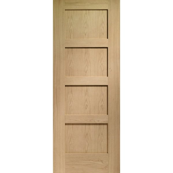 The Shaker 4 Panel Oak Door is suited for any Modern or traditional home Setting. Four recessed solid rectangular panels, an incredibly high quality manufactured door supplied unfinished ready to paint or stain. Matching this design there is a Fire Door(FD30) option available, and also a Fire and non fire rated glazed door option available please also refer to pre-finished versions of this door. Please note there are a range of sizes available from stock however please enquire about our bespoke options. Please call to enquire further on 0208 303 1572.