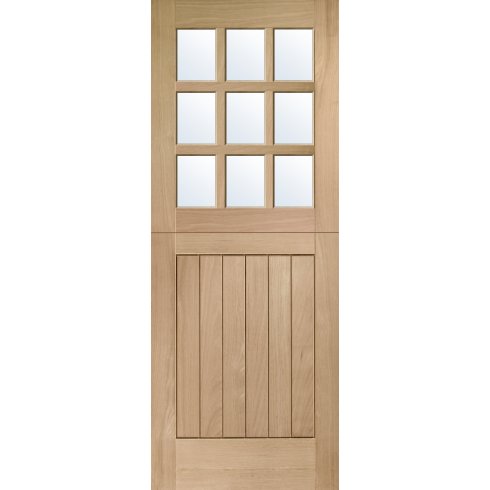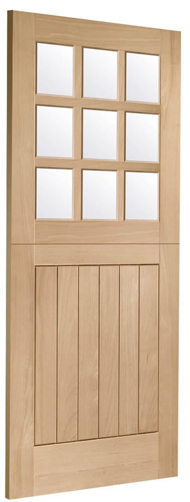 The Stable 9 light external door is a glazed oak 2 piece door based on the ever popular Suffolk with it’s boarded bottom section. A stable door allows for the opening of the top section of the door to allow light and air into a property whilst keeping the bottom section closed. The stunning nine light design is pre-glazed in clear glass allowing natural light to flow into the rear of a property.