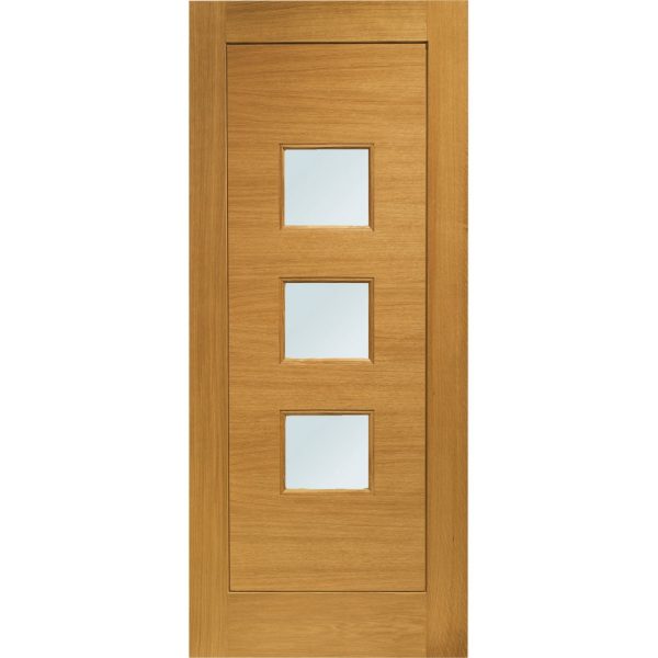 The Turin External Oak door is a Contemporary 3 light door that includes three large Low-E argon filled obscure glazed units. The obscure glazed panels allow for natural light to flow through the home without compromising privacy. The medium oak finish on the door is designed to accentuate the natural beauty of oak and combined with this stunning design gives a door that would enhance the look of any property.