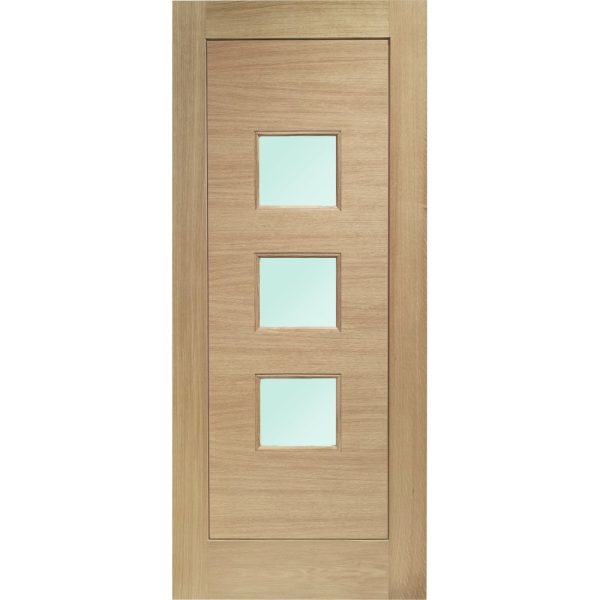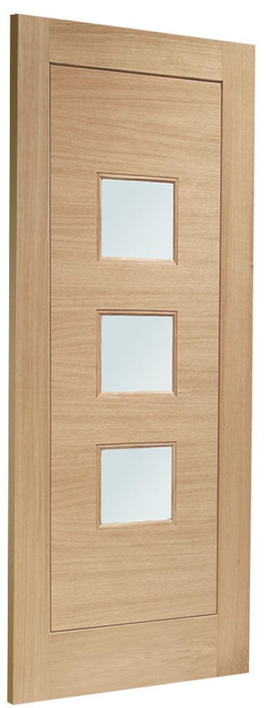 The Turin External Oak door is a Contemporary 3 light door that includes three large Low-E argon filled obscure glazed units. The obscure glazed panels allow for natural light to flow through the home without compromising privacy. An impressive door that would add a touch of class to any property.